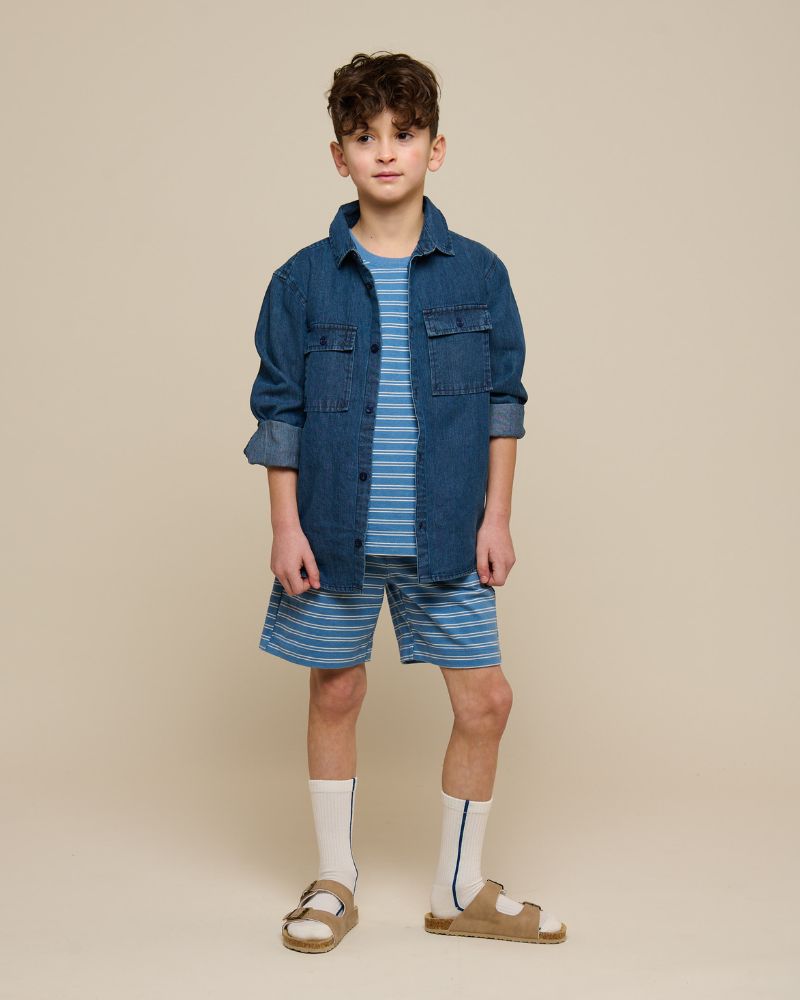 Gestreepte poplin overhemd en short set